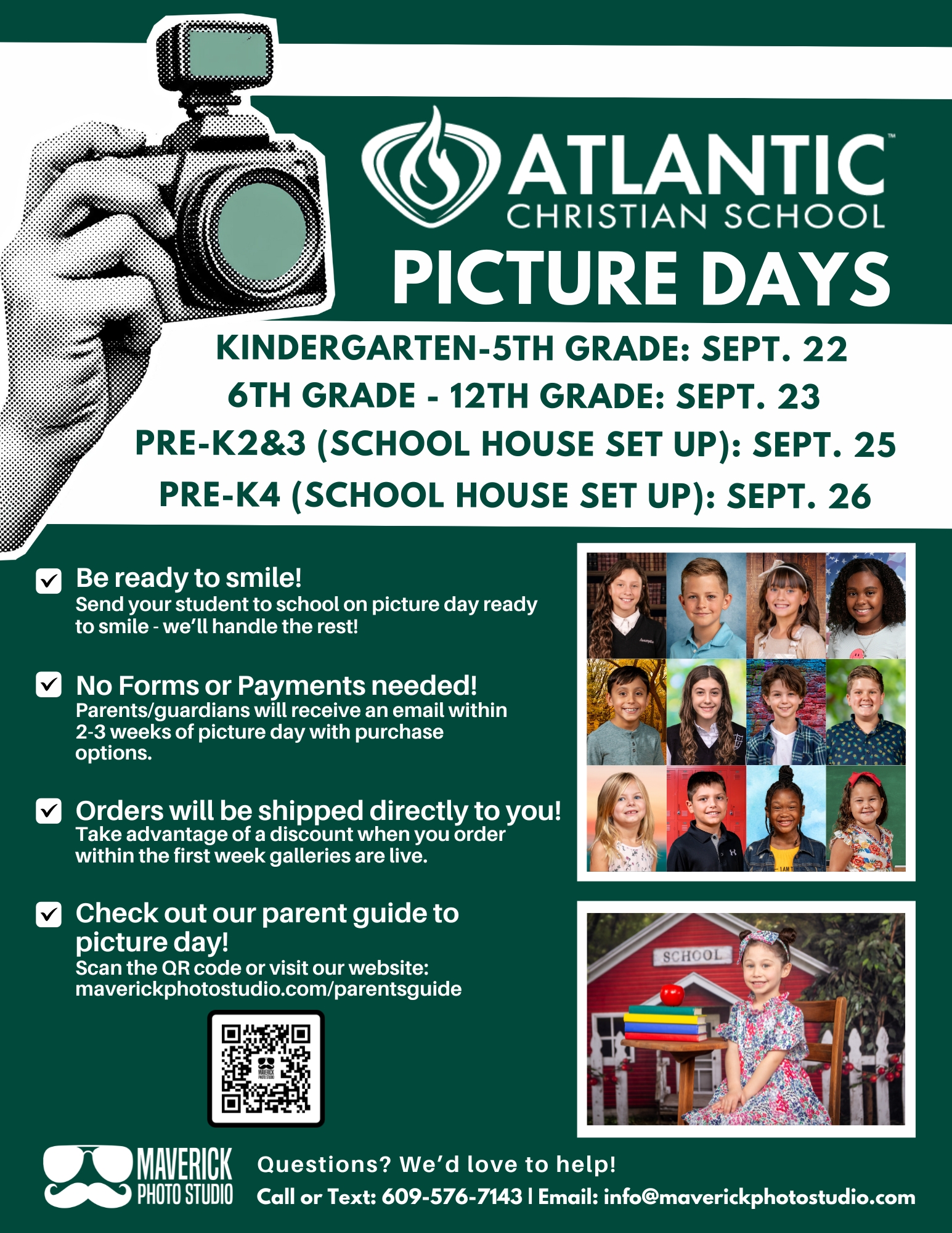 When the photos are ready, Maverick Photo Studio will email a link to all the parents to view the photos and to purchase packages on their website. If you have any questions, please email Mrs. Amy Parker at aparker@acseht.org