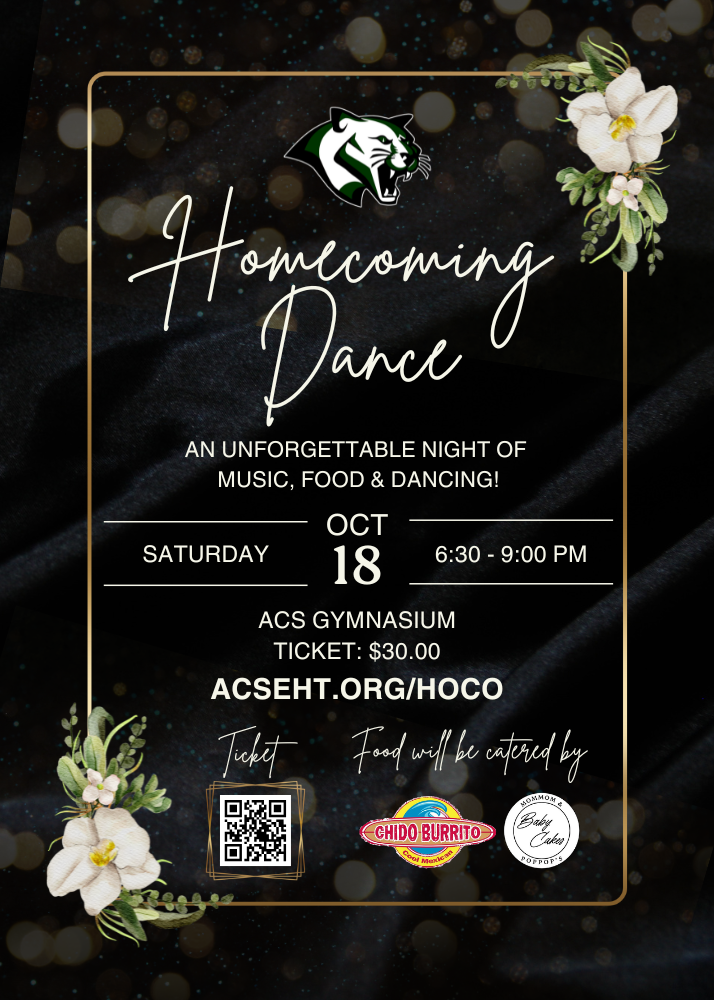 The Senior Class is excited to invite all high school students to the 2025 Homecoming Dance! Mark your calendars for Saturday, October 18, from 6:30–9:00 p.m. in the gymnasium. This annual event is a highlight of the fall season and students can look forward to an evening of music, food, and dancing.