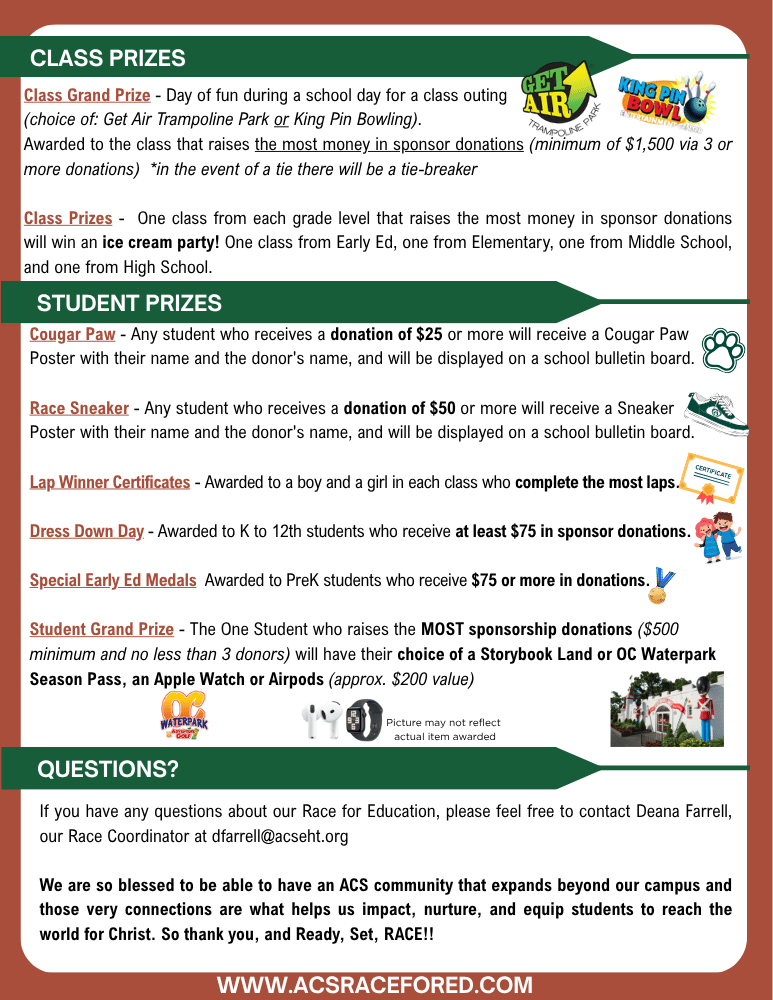 Due to the weather forecast, we will be postponing our Race for Education to Tuesday, November 4, 2025. While we may have to wait a few extra days to hit the track, our excitement and purpose remain the same!