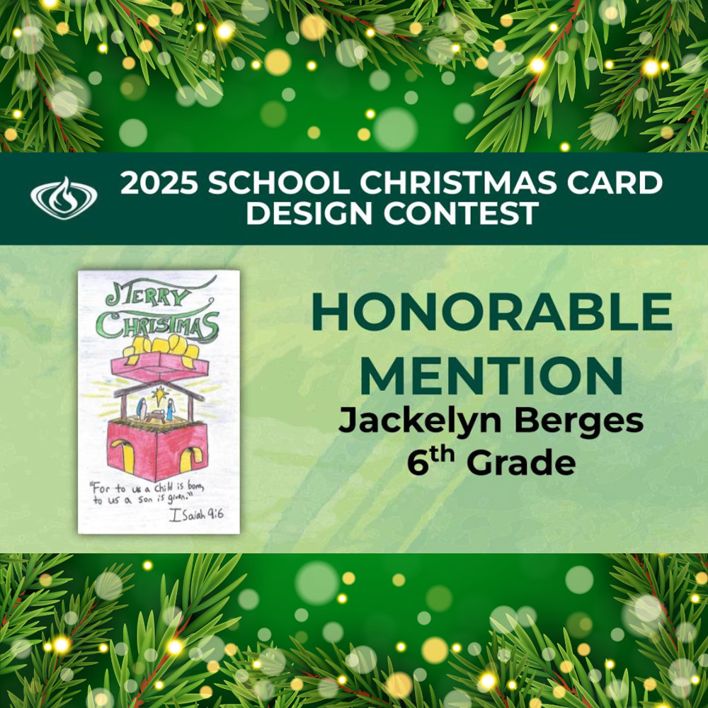 A special thank you to Art Teacher Genevieve Huff for leading this annual contest and encouraging students to use their God-given creativity to share the message of Christ’s birth through art.