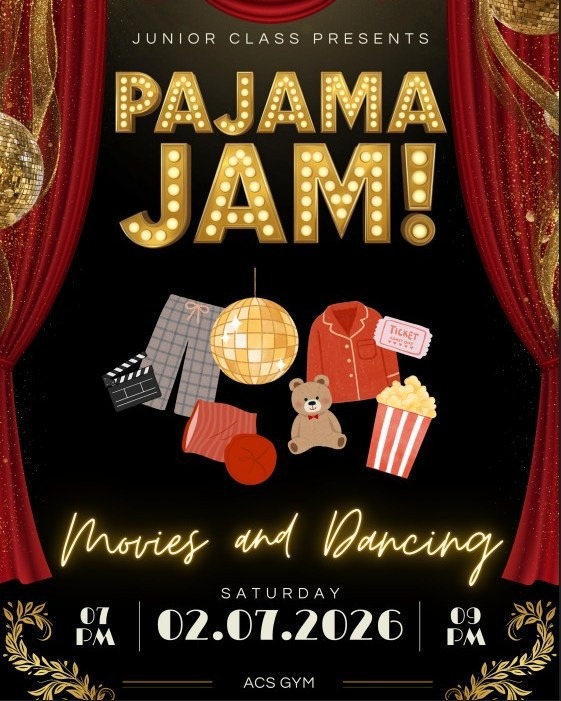 Pajama Jam will take place on Saturday, February 7, from 7:00–9:00 PM, and is open to all ACS high school students. The evening will include music, food, fellowship, and time for students to enjoy being together in a casual and welcoming setting.