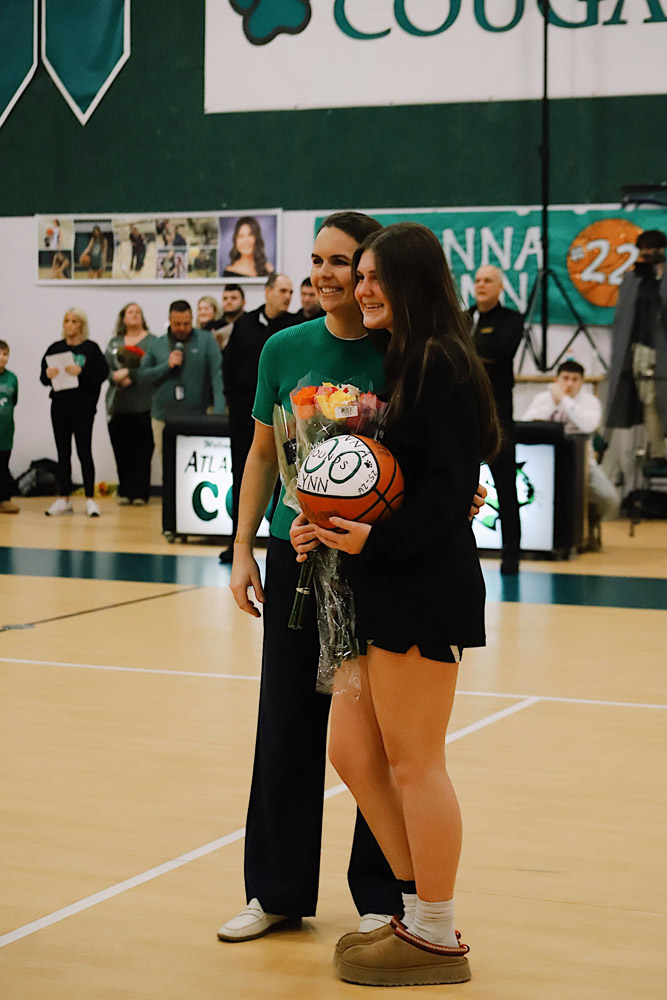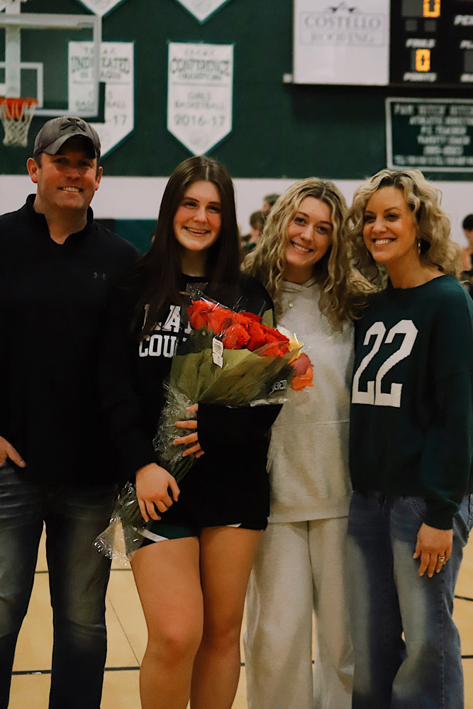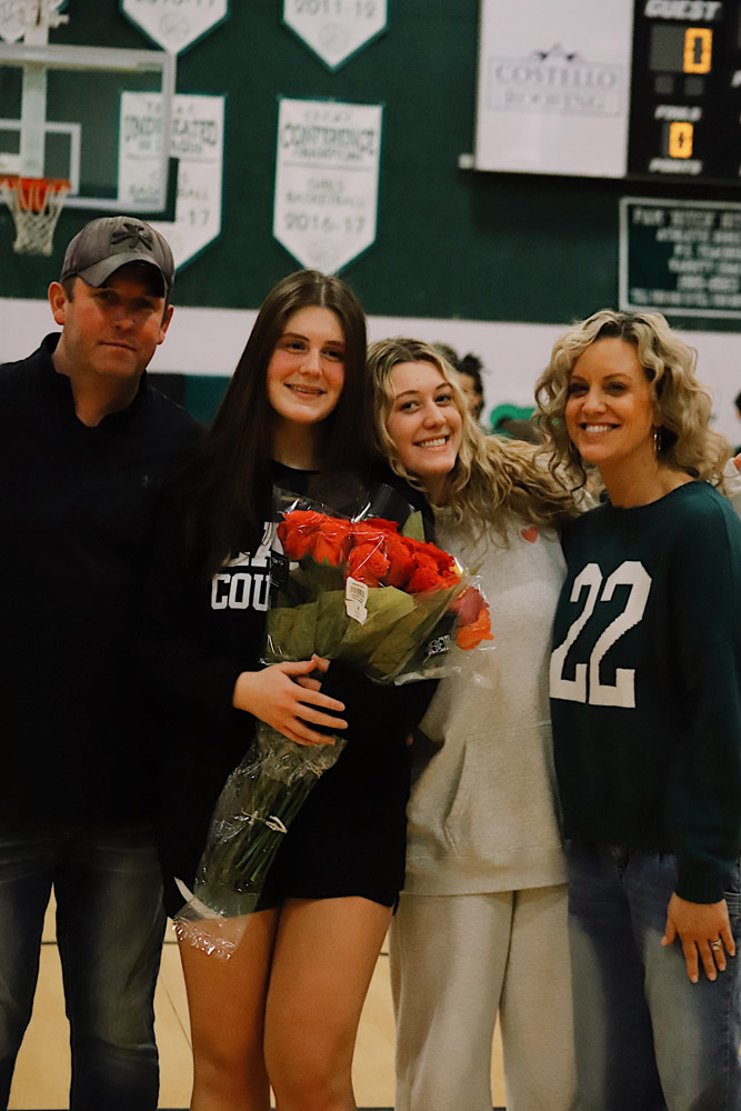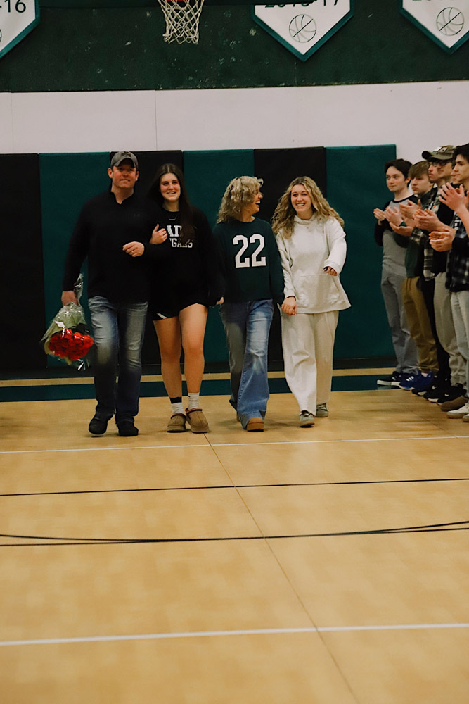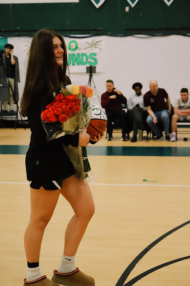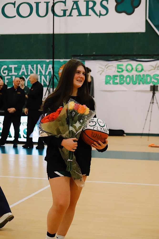 The evening also included a special milestone recognition, as Varsity Girls Coach Kaylee Breunig presented Gianna Flynn with a commemorative basketball celebrating 500 career rebounds as a testament to her consistency, grit, and love for the game.