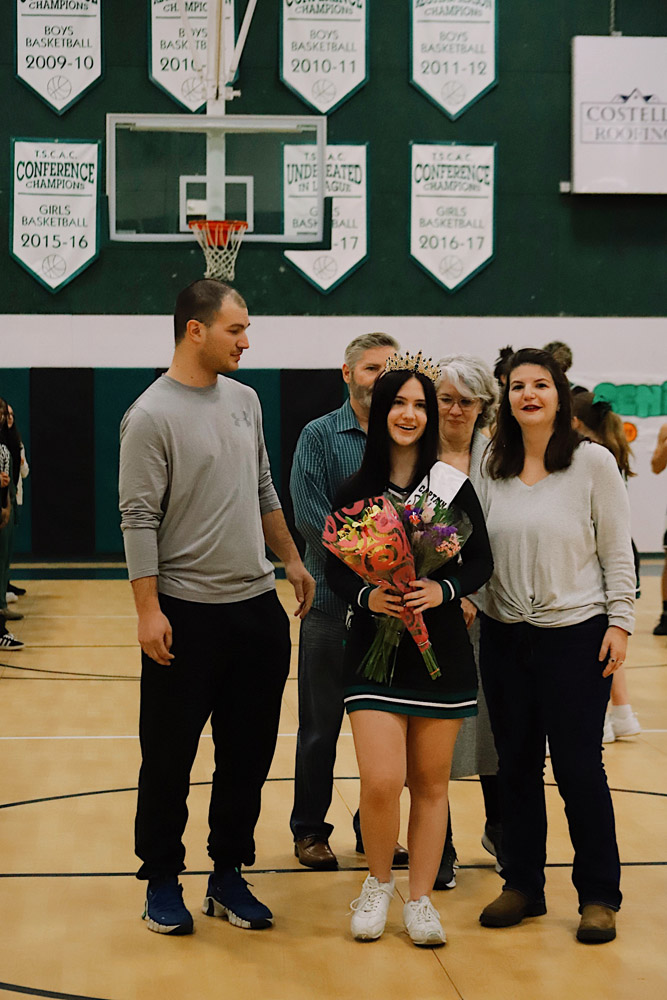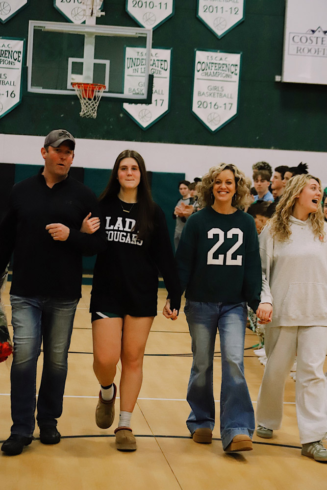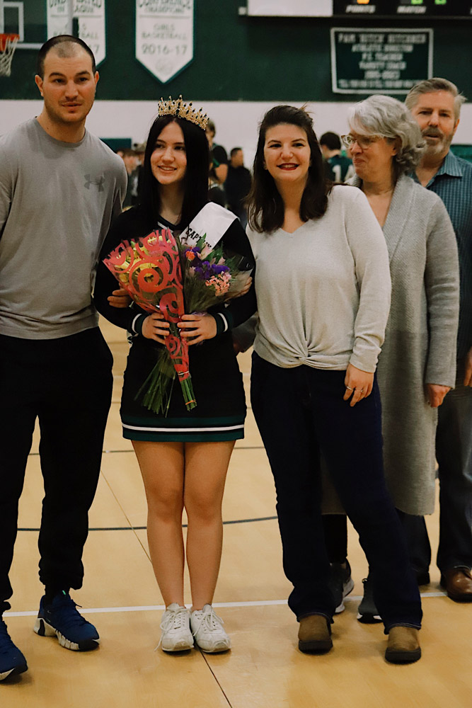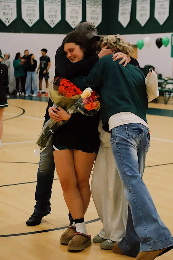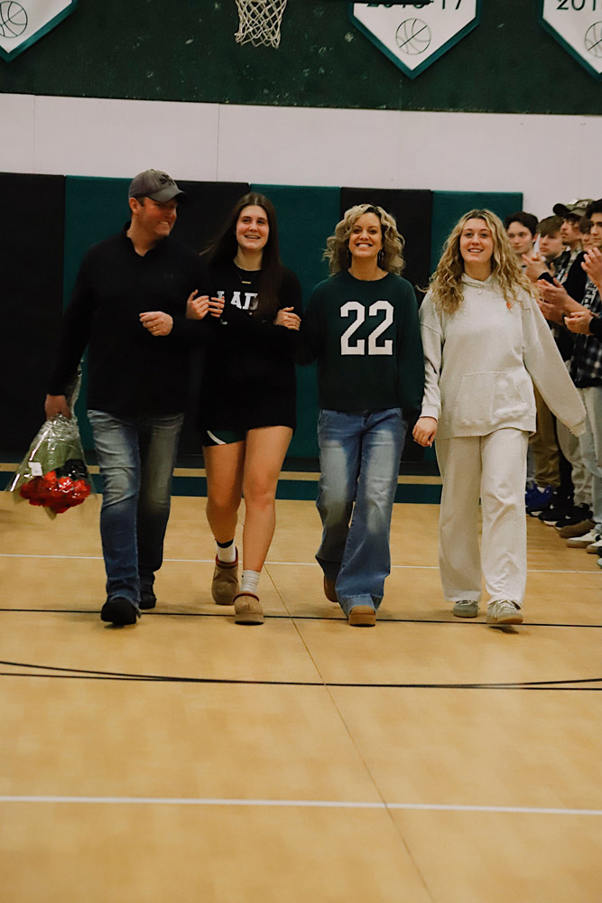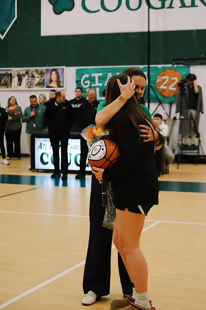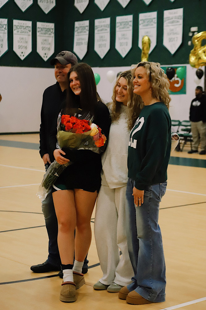 The evening also included a special milestone recognition, as Varsity Girls Coach Kaylee Breunig presented Gianna Flynn with a commemorative basketball celebrating 500 career rebounds as a testament to her consistency, grit, and love for the game.