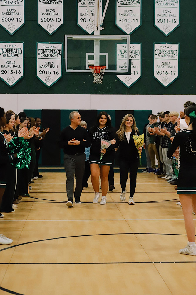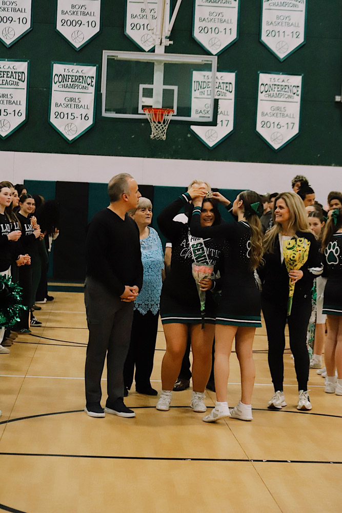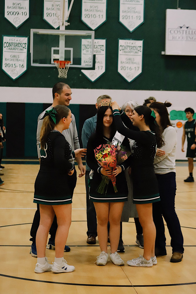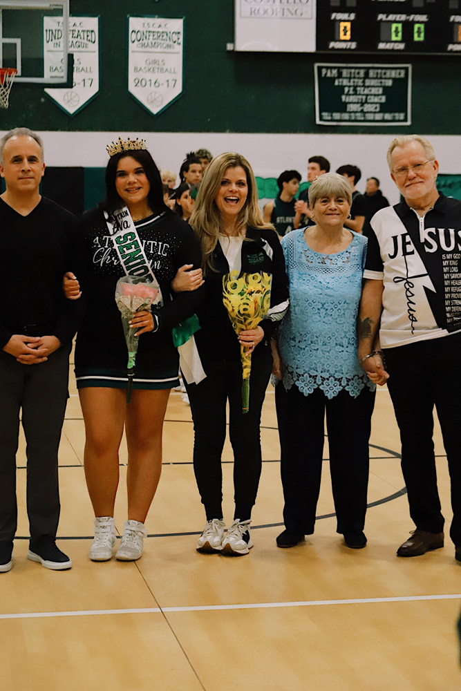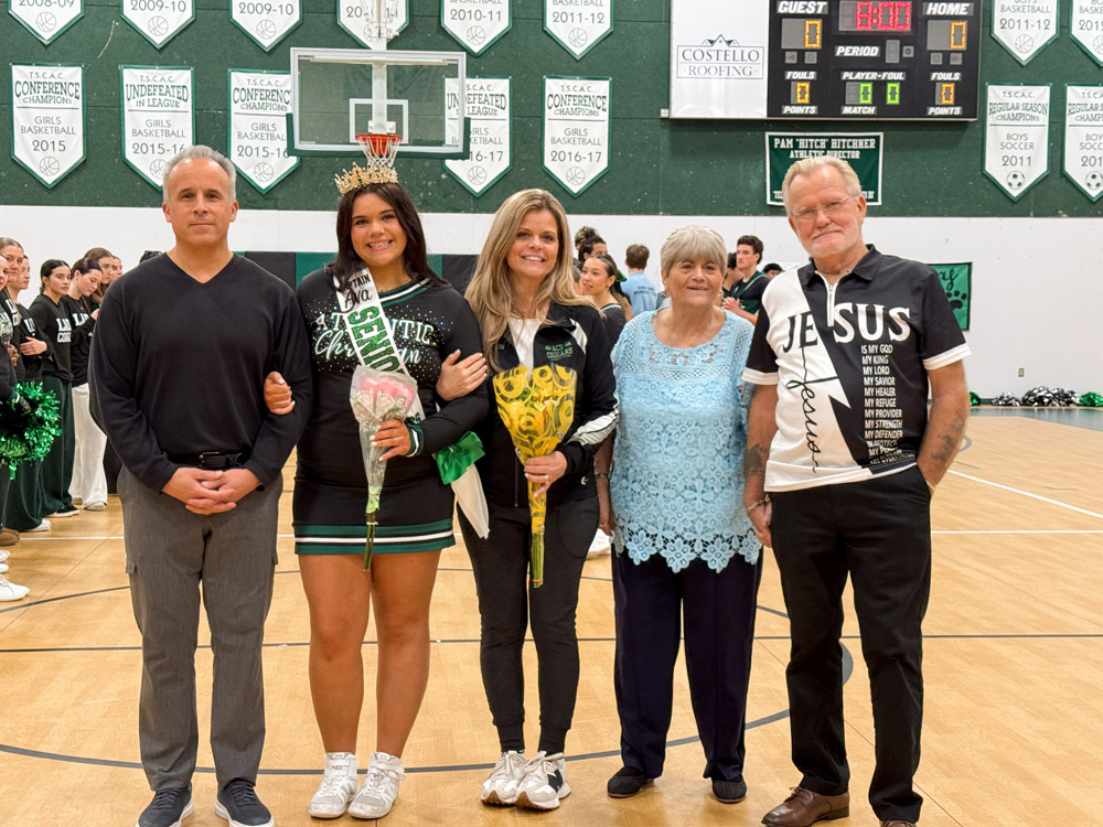 We are proud to recognize Gianna Flynn (#22), Captain of the Varsity Girls Basketball team; Ava Barberio and Sophia Whitehurst, Co-Captains of the Varsity Cheer team; and Caden Kim (#5), Captain of the Varsity Boys Basketball team.