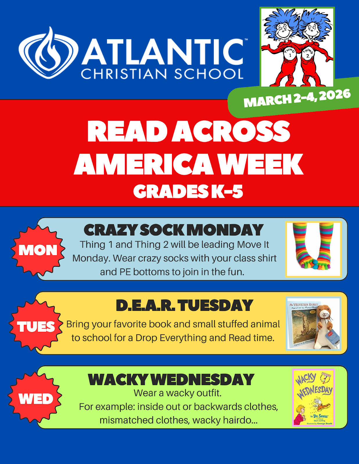 We are so excited to celebrate Read Across America Week here at Atlantic Christian School! This beloved national event is observed each year around March 2nd — beloved children’s author Dr. Seuss’s birthday — and is dedicated to inspiring a lifelong love of reading in children across the country.