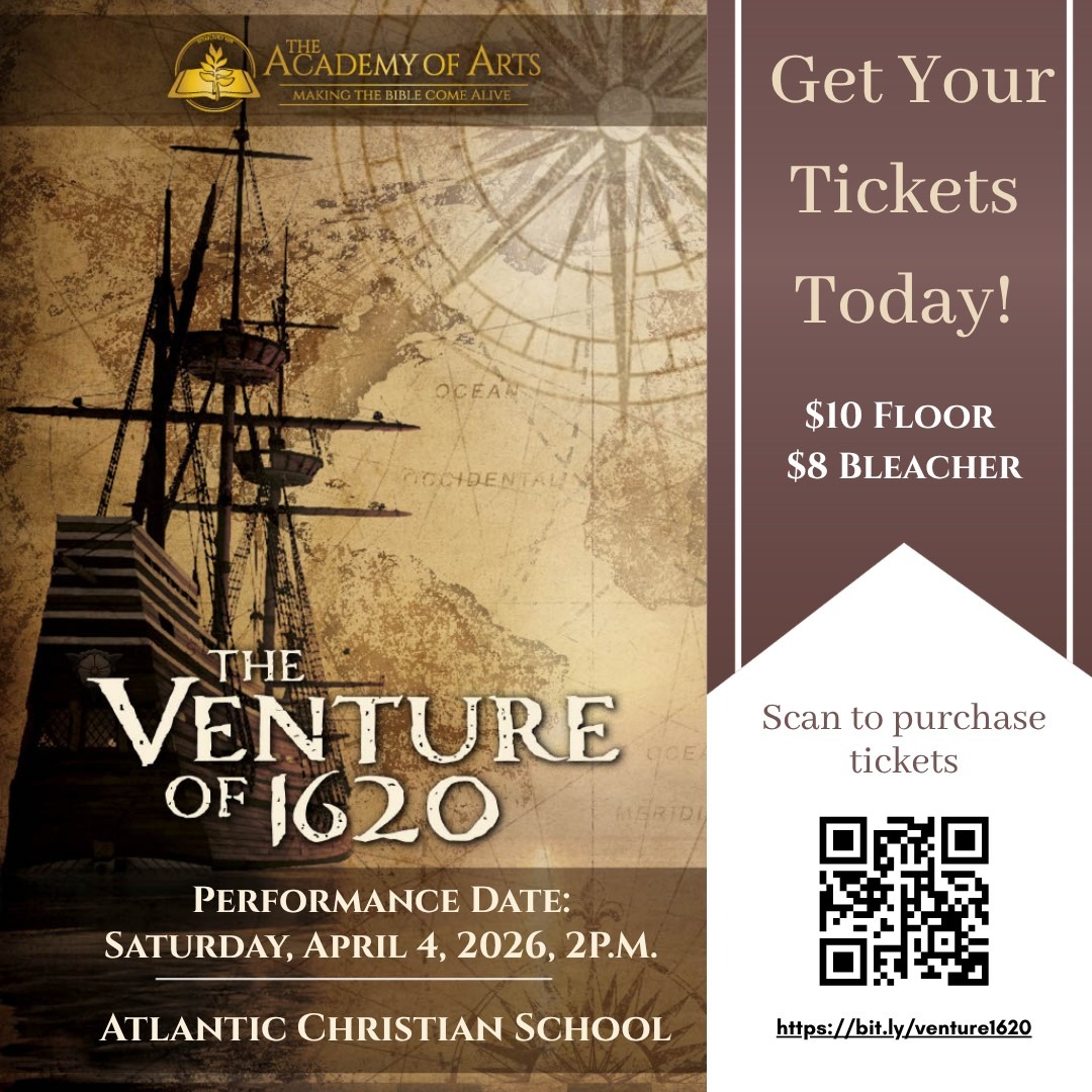 Atlantic Christian School invites you to a special student performance of The Venture of 1620 on Saturday, April 4.