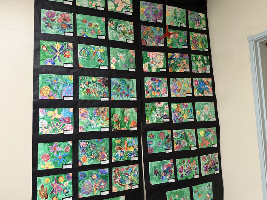 In addition to the concert, guests also enjoyed the Spring Art Show, which showcased an impressive collection of student artwork along the first-floor hallway. The exhibit included a wide range of artistic styles and media, such as paintings, sculptures, collages, scratch art, origami, and more—all created by students in grades 1 through 12. The show was curated by Mrs. Genevieve Huff, who did a fantastic job highlighting our students’ creativity and hard work.