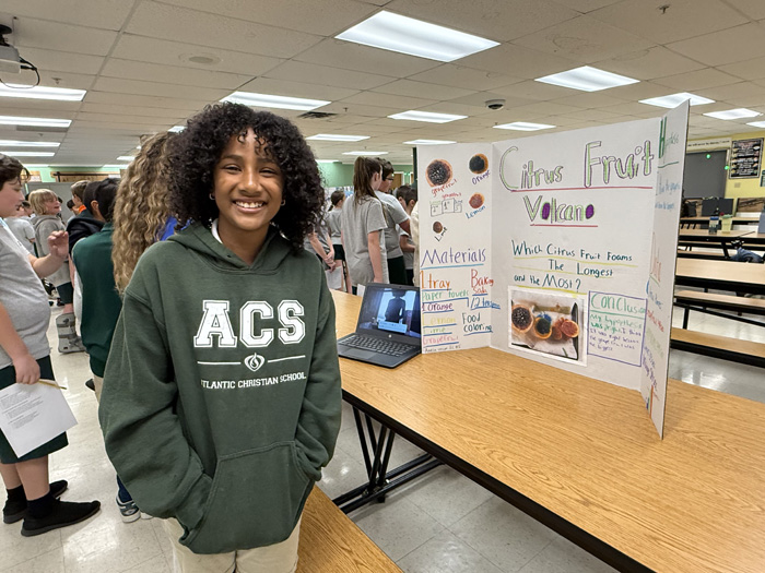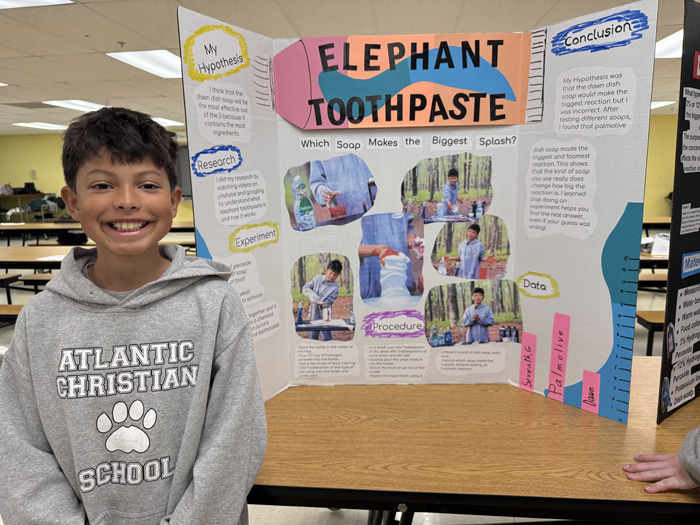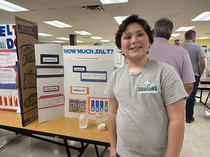 On Tuesday, May 6, Atlantic Christian School’s 5th grade students showcased their hard work and creativity during a Science Fair held in the cafeteria. The event was the culmination of several weeks of research, experimentation, and preparation as students worked on their individual science projects.