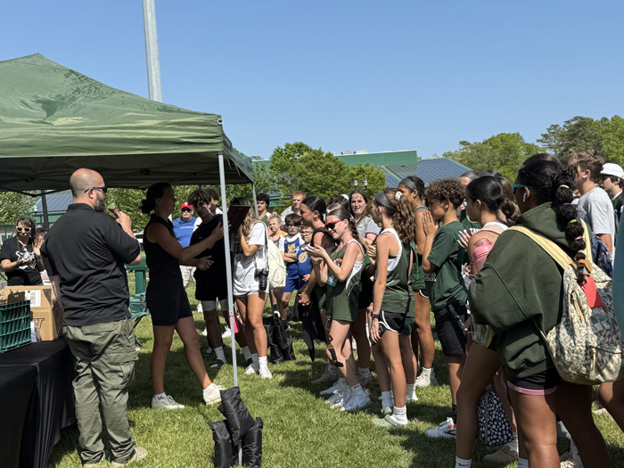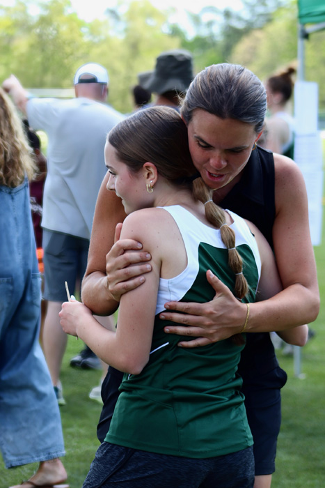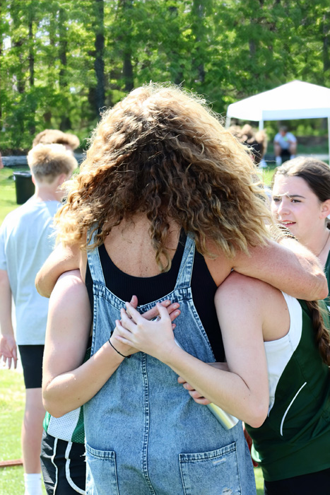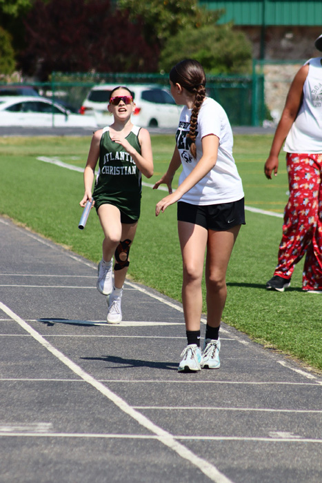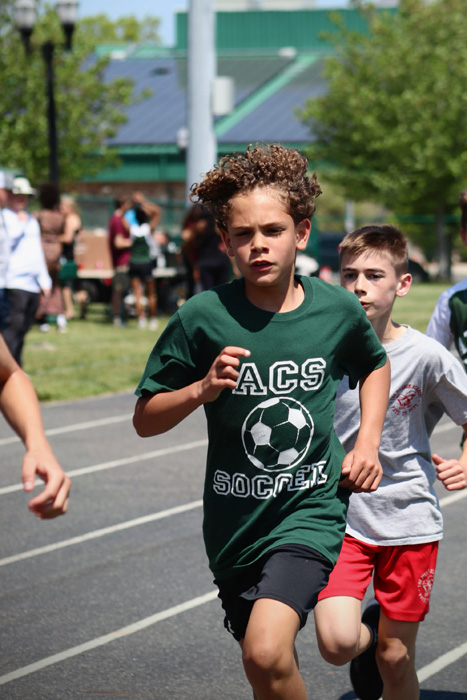 A large volunteer team of students, alumni, and parents helped manage the 20 track and field events in the meet, serving as timers, working at the scorer’s table, and cooking and serving at the concessions stand. In particular, Hitchner recognized and thanked several individuals for their efforts: PE teacher Kaylee Breunig, who served as Hitchner’s assistant;Â alumni parent Larry Martin, who oversaw the scorer’s table; substitute teacher Mike Bohs, who served as the official starter of all the races; Jeff Wolf, who served as the “Clerk of Course.” and PTF President Terry Vogel, who headed up the concessions stand that raised funds to support the ACS Athletic Department.
